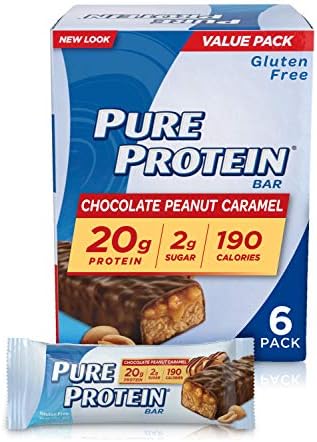 Amazon Com Pure Protein Bars High Protein Nutritious Snacks To Support Energy Low Sugar Gluten Free Chocolate Peanut Caramel 1 76oz 6 Pack Health Household